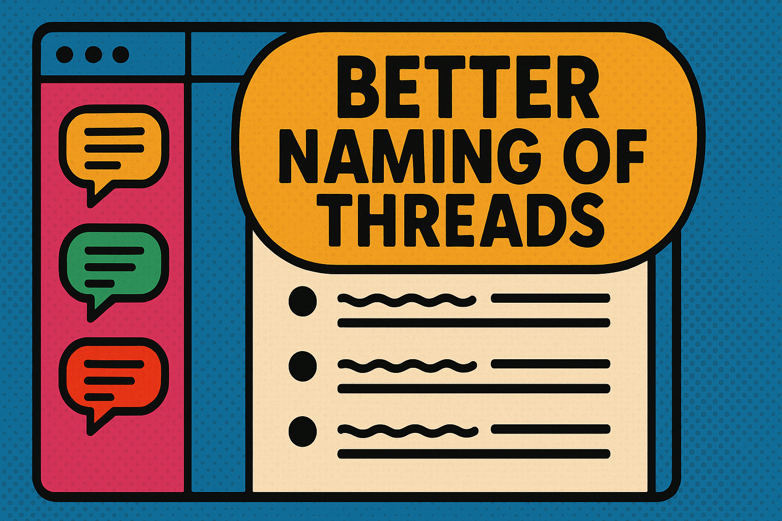 Following our major UI update, we now have a slightly smaller but no less important update. The naming of threads. We've given our sidebar titles a brain boost. Previously, titles were sometimes as forgettable as last week's leftovers. But our latest deploy is all about creating unique and insightful thread names.