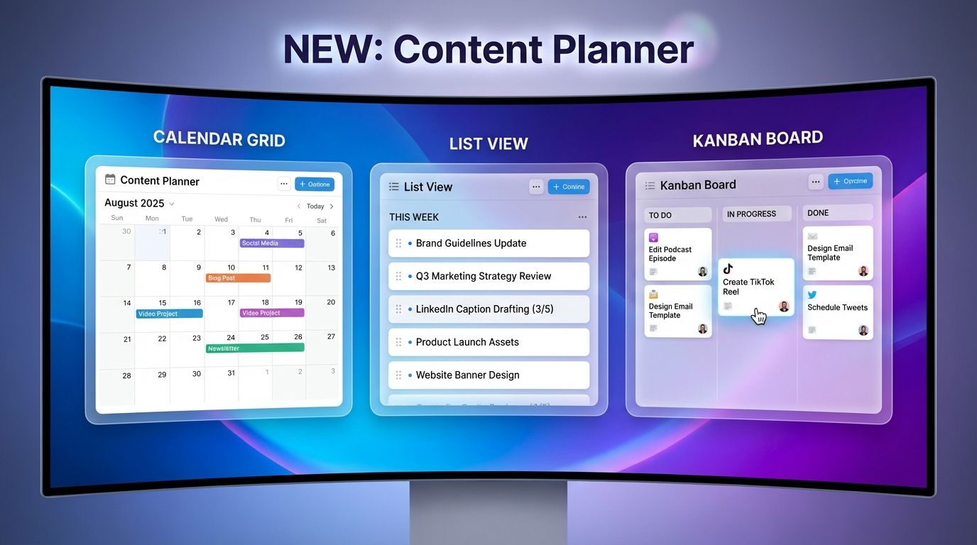 What's Inside? The Content Planner gives you three distinct ways to manage your content pipeline. Pick the one that fits how you work, or switch between them whenever you need a different perspective.